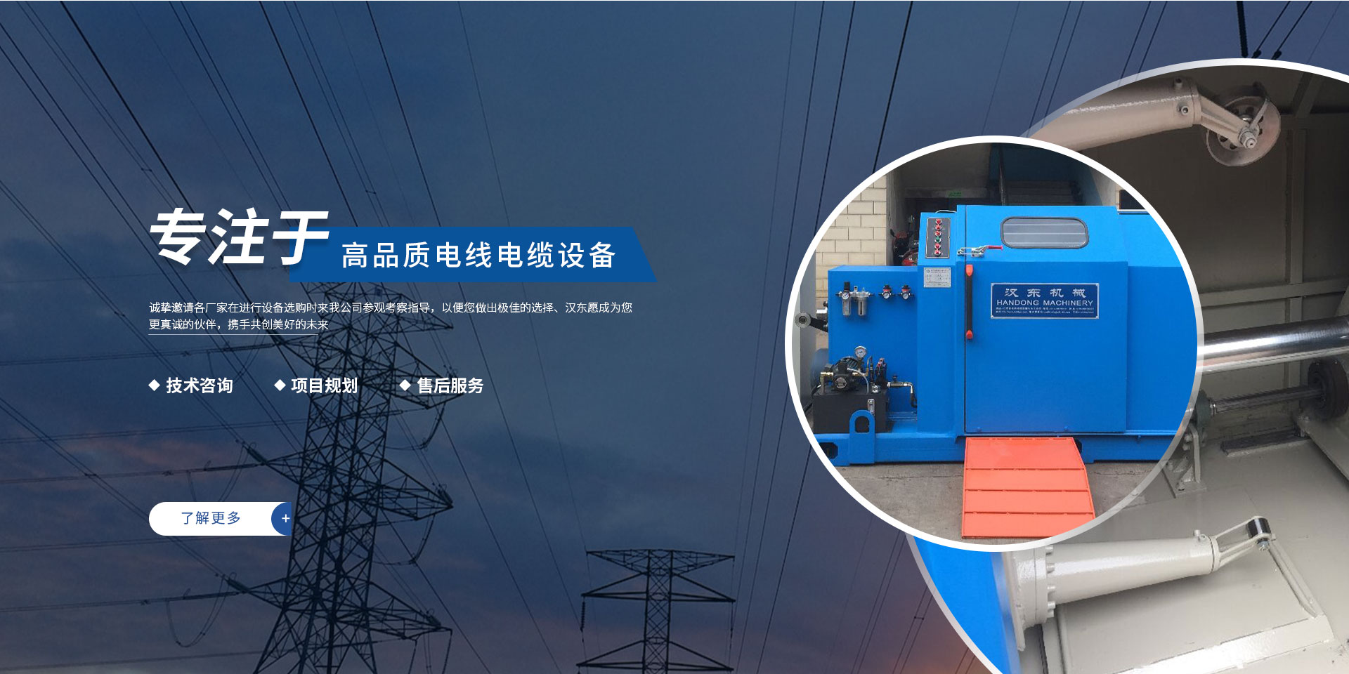 常州漢東機(jī)械始創(chuàng)于2006年,是集電線(xiàn)電纜機(jī)械設(shè)計(jì)、開(kāi)發(fā)、制造、安裝、調(diào)試為一體化的高科技企業(yè)。本公司自開(kāi)業(yè)以來(lái),積極引進(jìn)日本,歐美等國(guó)外電線(xiàn)電纜設(shè)備之先進(jìn)技術(shù),先后成功推出了達(dá)到行業(yè)先進(jìn)水平的電線(xiàn)電纜設(shè)備,主要產(chǎn)品有擠出、繞包、束線(xiàn)、成纜等電線(xiàn)電纜固定設(shè)備。在提供系統(tǒng)設(shè)備的同時(shí),還向客戶(hù)提供售前技術(shù)咨詢(xún)、項(xiàng)目規(guī)劃、以及售后服務(wù)。我公司本著“以人為本、科技先導(dǎo)、用戶(hù)為上”的宗旨,為客戶(hù)提供牢靠的產(chǎn)品與省心的服務(wù)。漢東愿成為您更真誠(chéng)的伙伴,攜手共創(chuàng)美好的未來(lái)!